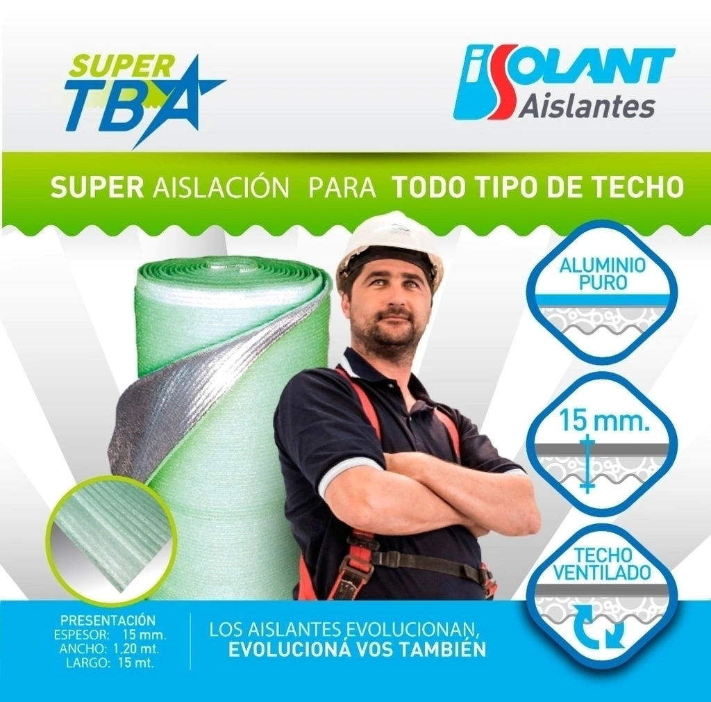 Aislante para cualquier tipo de techo con una cara de aluminio puro y 15mm de espesor, lo cual le confiere súper resistencia térmica.
