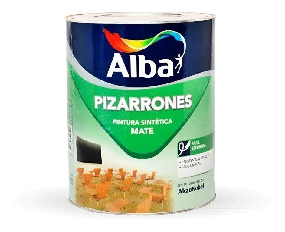 Pintura Sintética para Interiores Mate. Especialmente formulada para permitir el deslizamiento de la tiza y su posterior borrado. De gran resistencia al rayado y frotado, sin producir brillo Verde y negro.